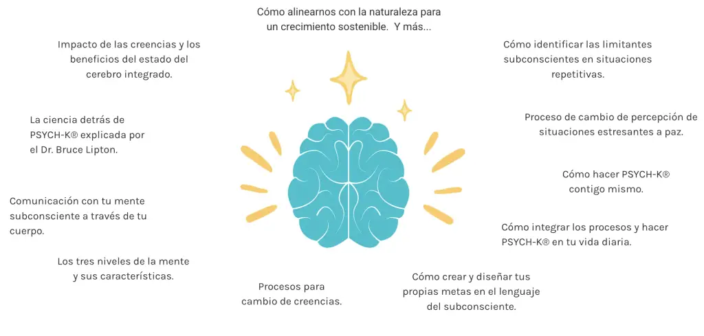 En el Taller de PSYCH-K® online aprenderás a identificar, cambiar las creencias limitantes que te impiden avanzar y reprogramar de una forma práctica tu mente subconsciente para liberar todo tu potencial.